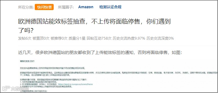 据业内人士透露,亚马逊卖家可能会出现某些产品无法上架的情况。这通常是由于卖家在以前上架产品时没有做能效标签的认证,而如今这些产品属于欧盟能效认证的范畴,必须进行认证才能符合平台的合规要求。