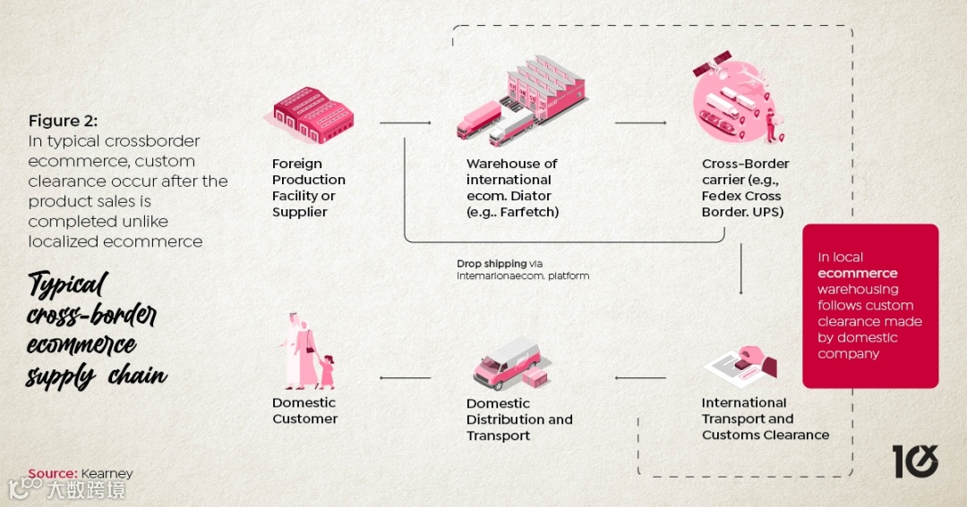 2021年,沙特跨境电子商务占总电子商务收入的59%,尽管随着本地和混合企业的发展,这一比例将下降,到2026年可能降至49%,但它仍然占据主导地位。