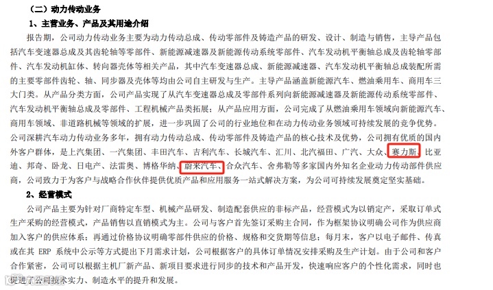 公司在动力传动领域技术积累深厚,产品性能达到国际先进水平,已进入一汽、吉利、长城、比亚迪、汇川、赛力斯、蔚来等主流车企供应链体系[k]。