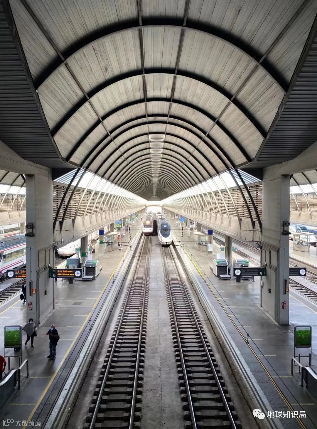 1992年,马德里—塞维利亚高铁在塞维利亚世博会开幕当日投入运营,1994年以300公里/小时运营,将两地通行时间缩短至2.5小时,显著带动沿线人流、物流与信息流[k]。塞维利亚圣胡斯塔站随之成为重要交通枢纽[k]。