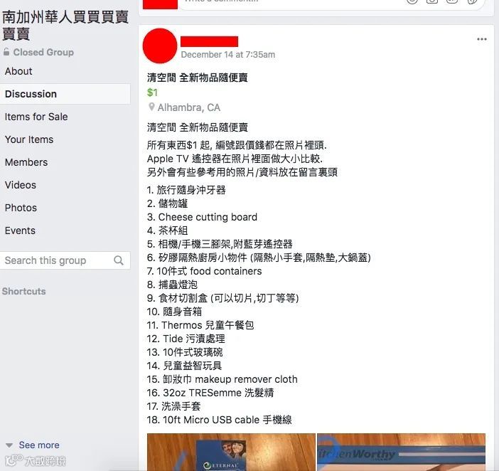 • fb 二手物品买卖群:fb 搜索关键字「地区名+二手/买卖」,比如说「湾区 二手/买卖」和「纽约 二手/买卖」就有很多搜索结果。现在 fb 在积极发展在线交易这块,这些买卖社团都会有 "Sell Something" 这个标签,输入物品、价格还有所在区域,PO 文之后就可以让群组里的人都看到了。