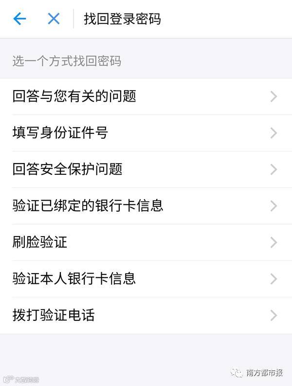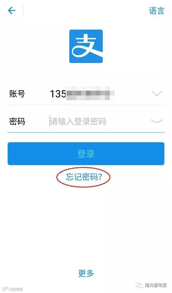 南方都市报进行测试,在朋友同意下尝试用其手机登录支付宝APP,选择“忘记密码”并模拟“无法接收短信”情景,验证找回密码流程。