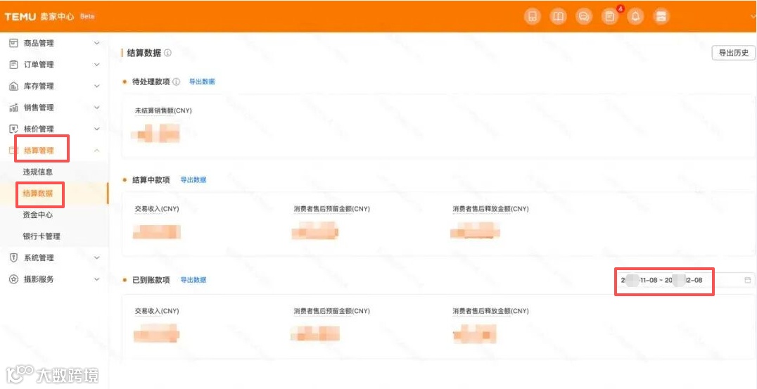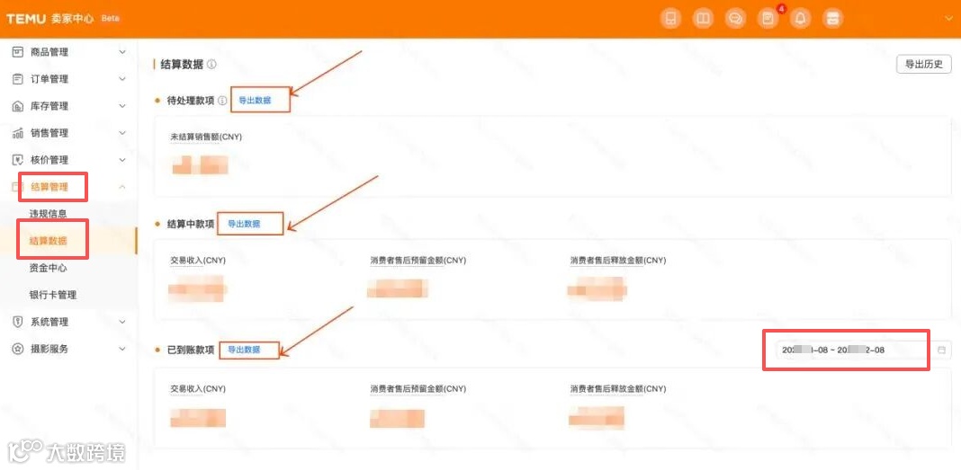 点击不同构成类型对应的【导出数据】按钮,下载其对应明细数据,财务就可以获悉哪些订单号、商品的货款资金已经到账。