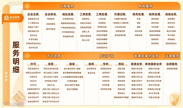 业务范围:工商注册 | 工商注销 | 代理记账 | 税务合规 | 财务外包 | 高新认定 | 知识产权 | 商标注册 | 专利申请 | 法律咨询等服务