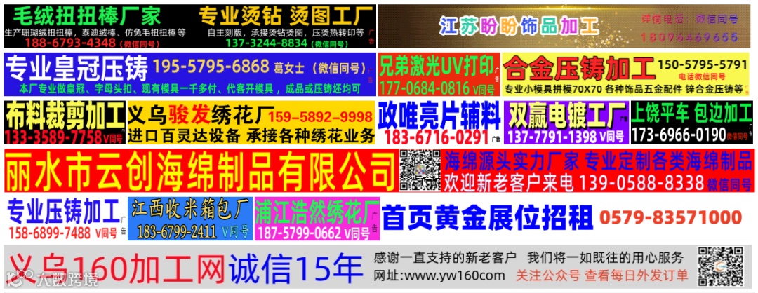 想要了解义乌市场行业相关信息请关注我们即可,合作时如遇到交押金,保证金等请谨慎合作,平台不参与接单,不包接单,不拿返点,佣金,茶点费,任何回扣等,祝各位老板生意兴隆,财源广进!