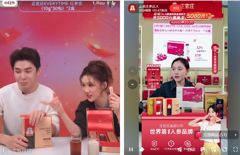 到了2019年以后,年轻人的购物习惯又变了。从“淘宝京东搜着买”,变成“刷抖音看着买”。用户可能只是在刷短视频,看到博主在熬夜后喝下一条红参液,瞬间触发“我也需要”的场景共鸣,从而完成“即时种草、即时下单”。正官庄迅速布局抖音旗舰店与直播矩阵,将社媒电商打造成年轻化的新增长引擎。