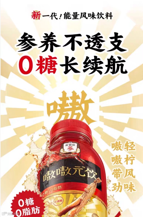 正官庄养生水系列,相继推出嘭嘭元饮与嗷嗷饮两款核心产品,定位为日常轻养生水饮。其中,嘭嘭元饮聚焦红润气色,以红参为基底搭配天然草本成分,帮助饮用者由内而外焕亮肌肤。嗷嗷饮则主打能量补充,适用于熬夜、能量补充等场景,通过科学配比红参精华与维生素等原料,实现无咖啡因的温和提神。两款产品主打线下商超、便利店,单瓶价格在10元以内。