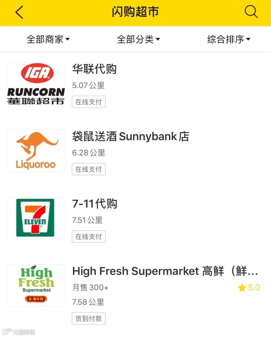 其中uber eats以澳洲本地餐厅居多,也有诸如KFC麦当来的代买外送服务。