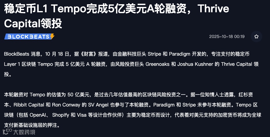 特别值得注意的是 OpenAI 和 Anthropic 的参与,暗示了 Tempo 对"AI 智能体支付"的布局,自主进行金融交易的需求将快速增长,Tempo 可能希望成为这一领域的基础设施。