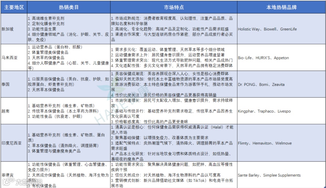 东南亚各国由于经济发展水平、文化传统、宗教信仰等方面的差异,形成了各具特色的保健食品市场特征和消费者偏好,本土品牌也凭借对当地市场的了解,在竞争中占据一席之地。