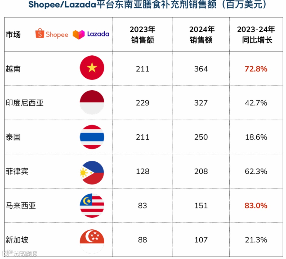 一方面,本土电商平台如 Lazada、Shopee 等在东南亚市场占据主导地位,这些平台通过整合当地的保健食品品牌资源,为消费者提供了丰富的产品选择,同时借助便捷的物流配送体系和多样化的营销活动,如促销打折、直播带货等,有效刺激了消费者的购买需求。许多本土中小保健食品品牌通过入驻这些电商平台,得以快速触达更广泛的消费群体,降低了市场准入门槛和营销成本,实现了品牌的快速成长。