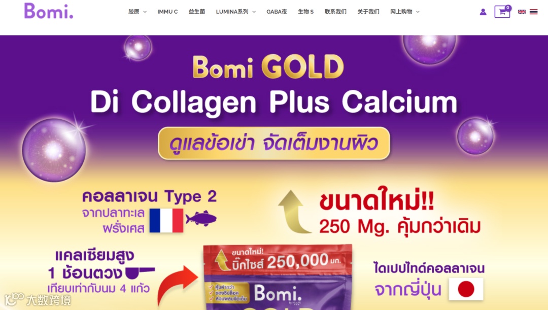 Bomi(โบมิ):泰国护肤品牌MizuMi旗下的健康补充剂品牌,以 “Happy Body and Mind(健康身心)” 为核心理念。品牌初期主打胶原蛋白补充产品,涵盖便捷口服型与高端瓶装饮品类,并邀请知名演员 pp 代言,快速打开年轻消费市场;后续拓展免疫力提升品类,加入泰国南姜等本土草本成分;最新产品引入韩国益生菌株,搭配膳食纤维、锌与维生素 C。该品牌主要通过泰国本地连锁零售商(如屈臣氏、711便利店)以及 Shopee 等电商平台销售。