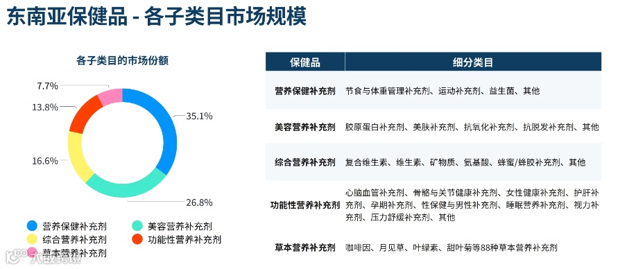 若您希望进一步挖掘东南亚保健食品市场的信息,例如各细分品类的竞争格局,线上线下双渠道的销售数据对比以及各国差异化的法规监管要求等,可参考我们此前发布的《东南亚保健食品市场分析》一文,中对上述维度均有更详尽的解读与数据支撑,能够为您全面把握市场动态提供更多参考。