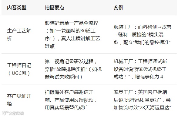 不同行业的工厂需根据产品特性调整镜头侧重点,但核心逻辑始终围绕"消除信任顾虑"展开: