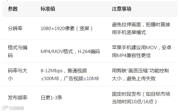 TikTok对视频格式有明确要求,不符合标准可能导致推荐受限,核心参数如下: