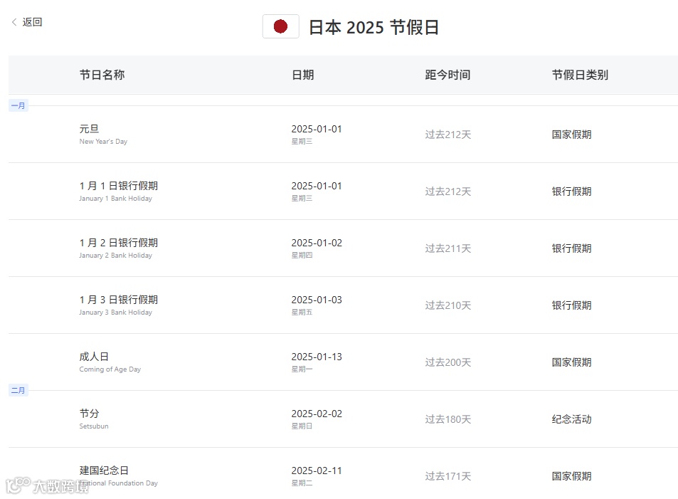 对于面向日本市场的跨境电商卖家而言,了解日本的节假日并在合适的时机推出促销活动,能够大大提升品牌曝光和销量。大数跨境网站的世界各国/地区节假日查询工具正是帮助跨境电商卖家精准把握节假日商机的重要工具。