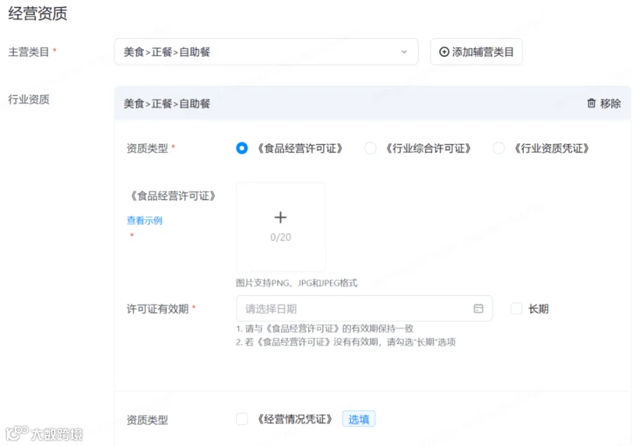 2. **完善门店信息**:以独立门店为例,输入门店名称。若找不到地址,就点击下方 “新建店铺”;若已有地址,就点击 “去认领”。之后,要上传店铺营业执照,像餐饮行业还需上传食品许可证(选填的可不传)。准确完善信息,如同搭建好坚固的店面,让顾客放心。