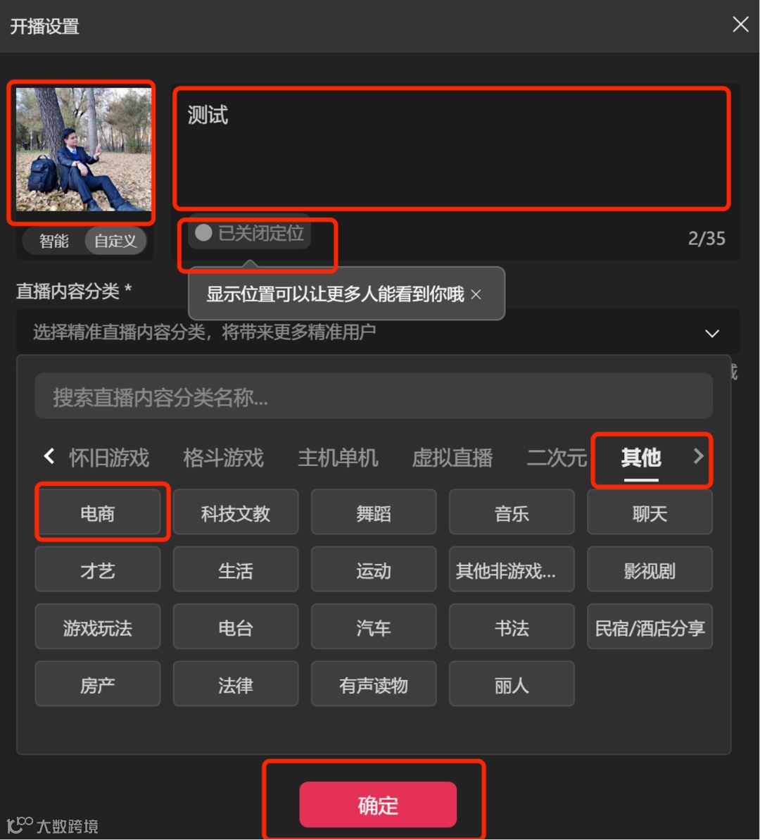 设置开播信息(这个可以一开始就设置,就看使用习惯了)