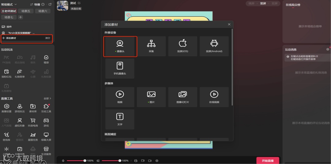 直播间设置第二个镜头作为产品特写-+素材+摄像头