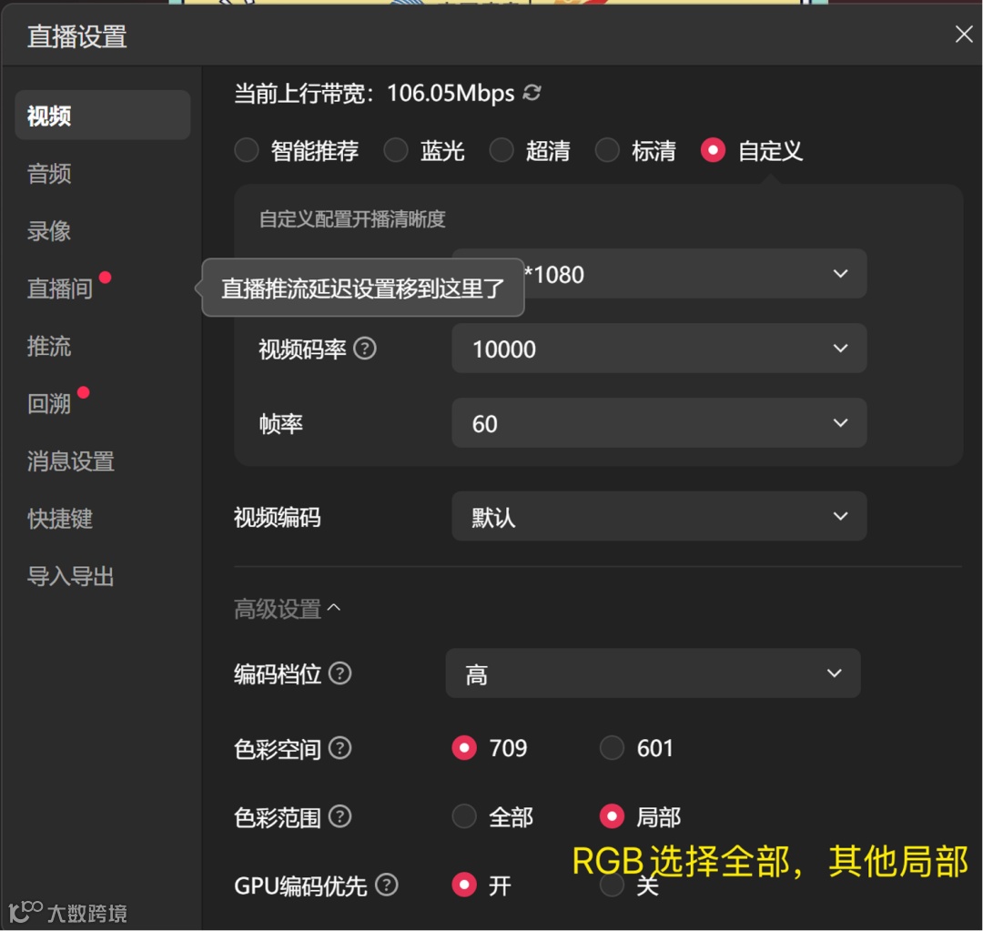 视频格式色彩范围不懂的可以先跳过,那个是为了让直播更佳清洗有质感