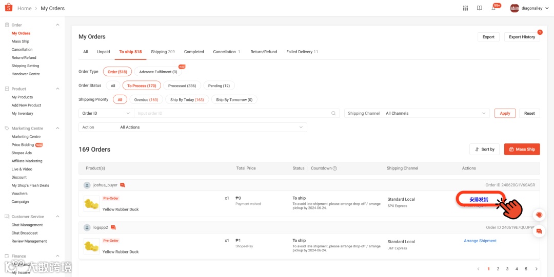 卖家无需等待骑手上门取货。在卖家中心安排订单出货后,卖家即可自行前往附近的寄货点投递包裹。