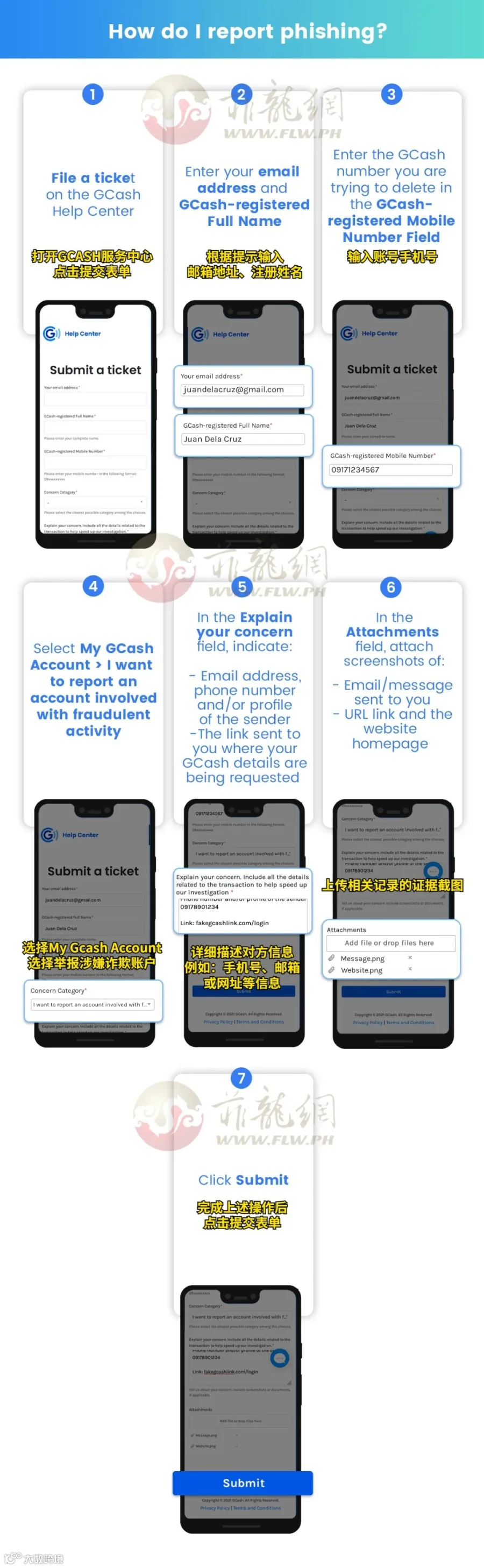 依照官网页面的指引,朋友将诈骗经历汇报给了Gcash服务中心,提交相关证据和记录备案,目前正等待进一步的调查。(文后附上求助流程)遭遇诈骗怎么办?