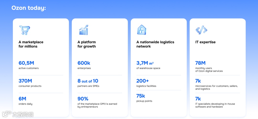 Ozon是俄罗斯领先的多品类综合B2C电商平台,成立于1998年。