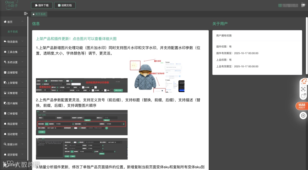 首先要夸一下它的界面,紫色系深得我心!整体画风简洁明了,能看出作者很用心。这款插件在Ozon后台出台违反复制禁令时火了一把,据说能规避90%以上的平台下架风险。功能确实硬核,选品、上品、跟卖、数据都很准,精铺接入了Deepseek满血复活版,跟卖实现了自动化选品和批量上架。最近刚推出的主题标签反查功能也很及时。目前这是我用得最多的插件,性价比很高。