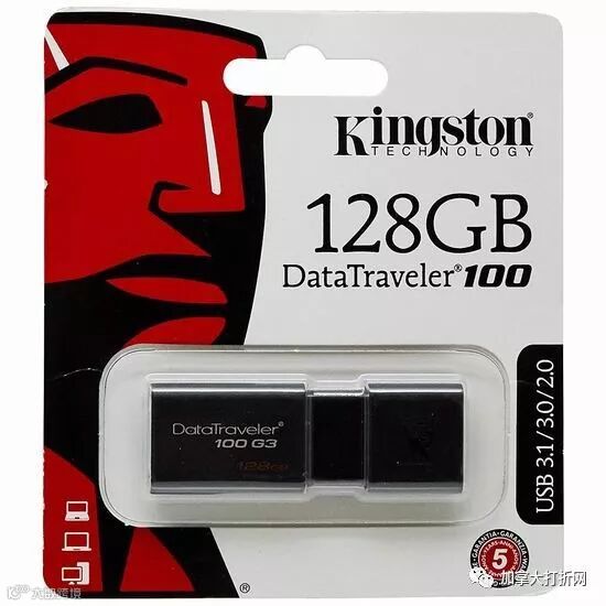 历史新低!Kingston SanDisk DT100G3 128GB 闪存盘/U盘 19.99加元!