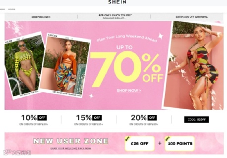 SHEIN的网站经常有许多充满诱惑力的打折活动,通常学生还额外享有15%的折扣