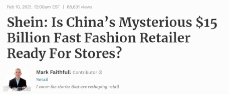 福布斯:《SHEIN:中国神秘的价值150亿美元的时尚品牌,它准备好进军实体店了吗?》