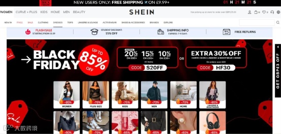 SHEIN网站上的各种促销和优惠手段自然也必不可少。就在最近,西方一年一度的“黑色星期五”又到了。在全球很多国家,这是一年之中最重要的购物季之一。