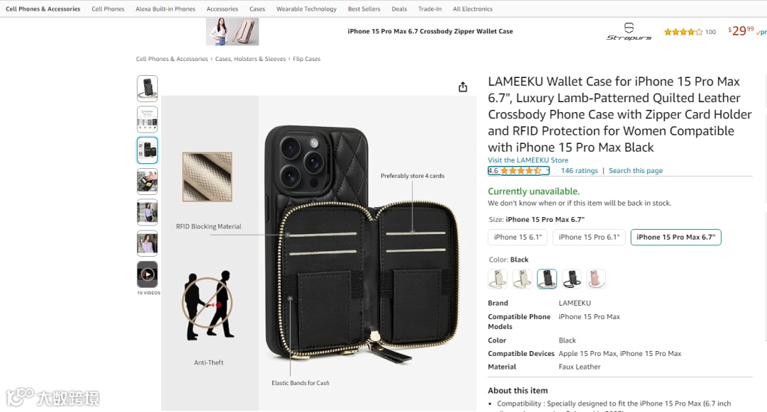 低成本、低邮费让毛利空间更可观;SKU 更是海量——从便携充电宝、Lightning 数据线,到防摔壳、造型手机链,应有尽有。