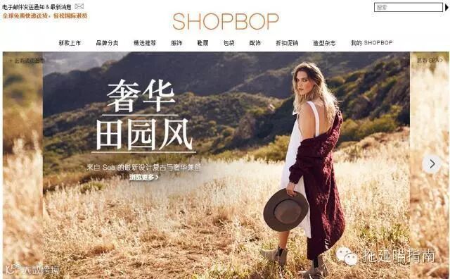 中文页面,卖的大多都是二三线品牌。页面做的赏心悦目,不买东西逛逛网站学学搭配都行~它家的度假风品牌特别多,每次看到赏心悦目的搭配都想去度假~~