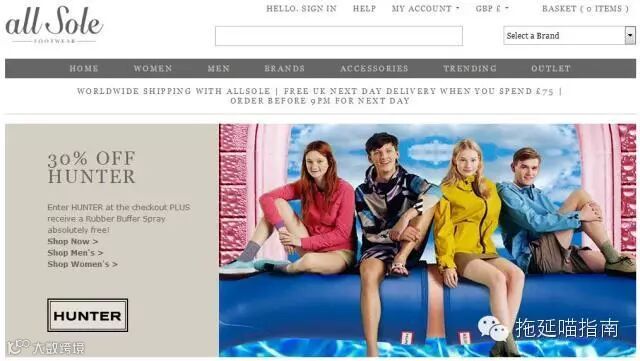 英国的专卖鞋子的网站,免邮门槛低。也是HUT集团旗下的网站。