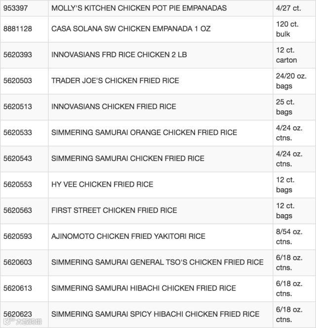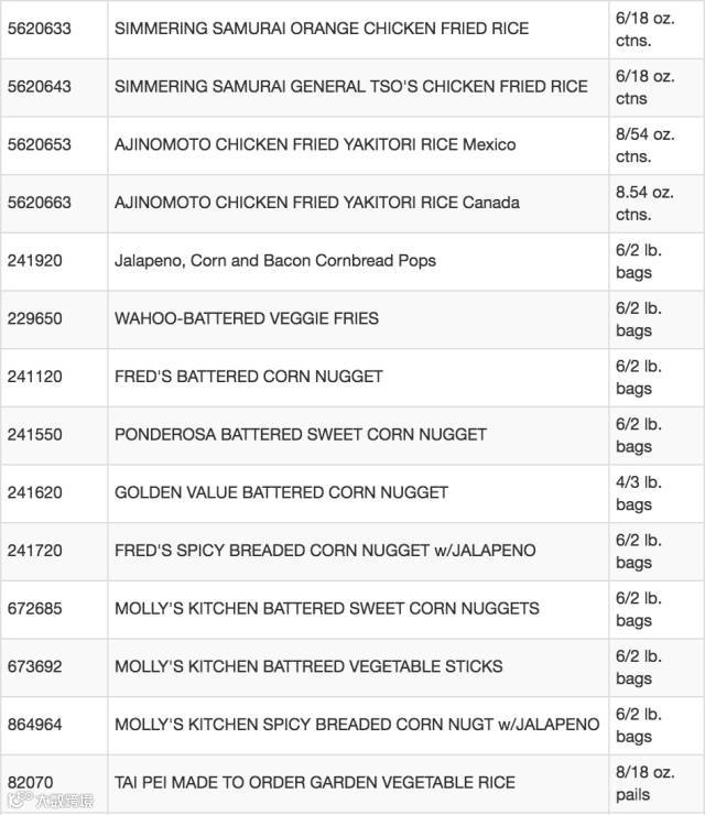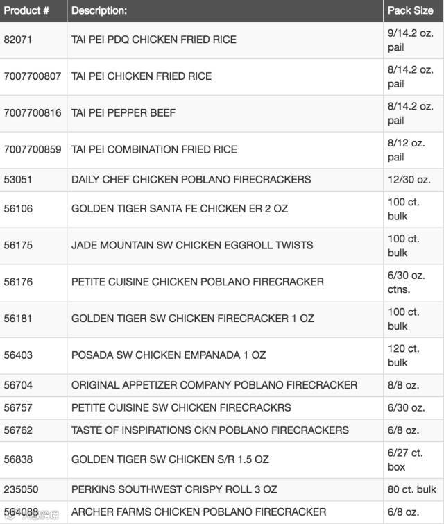 这周美国食品管理局再发安全通告,除了蔬果外,Costco,Trader Joe's,Walmart,Safeway等知名超市多达4711磅半成品(已初步热处理过),超过65种鸡肉,牛肉,猪肉食品也陷入“病菌风波”,这次被召回更包括多种中式口味的冷冻炒饭。