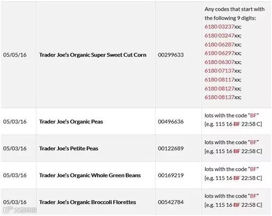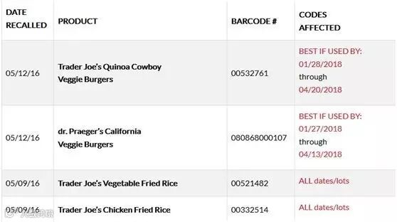 Trader Joe`s结合上次CRF 冷冻果蔬召回事件,今天(5月13日)在官网公布了一份完整的该店食品“中招”名单: