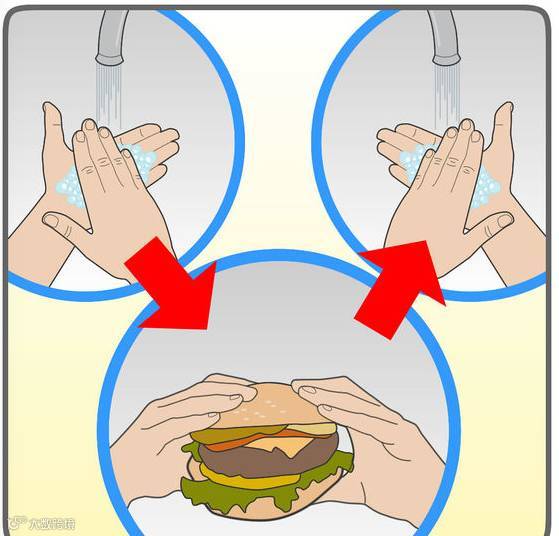 少吃速冻食品,洗淨蔬菜,准备食物之前洗手,避免生肉汁液接触同其他食物。