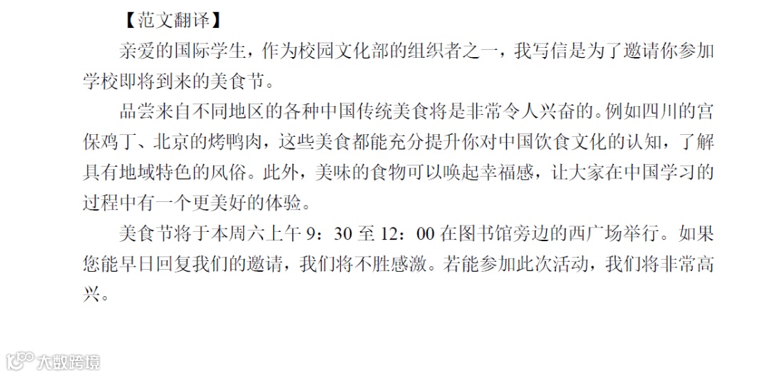As one of the organizers of Campus Culture Department,I am writing to invite you to attend the coming Food Festival in our school.
