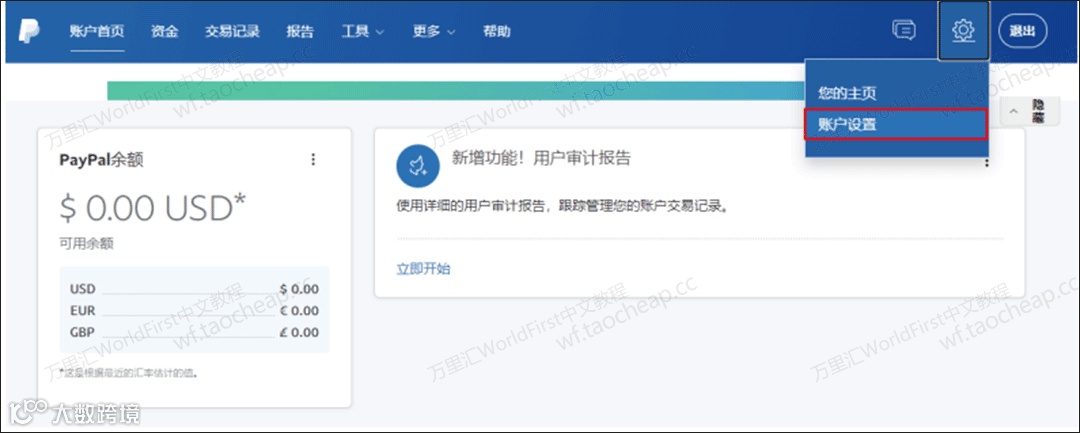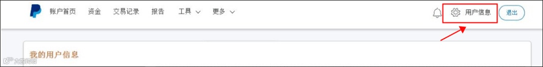 登录您的Paypal账户后台,点击屏幕右上角的齿轮,进入用户信息