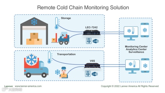 在仓库、集装箱和卡车里部署温度、湿度和GPS传感器,实现冷链物流的全程监控。
