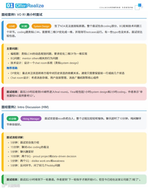 面试决胜: 针对性进行Mock Interview(技术面/行为面/Case面),精准提升面试表现与实战能力。