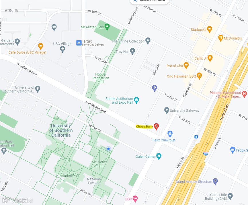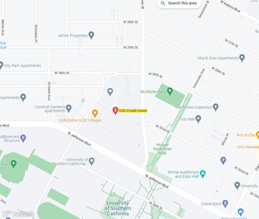 学校附近的银行有Bank of America(BOA)、Chase和USC Credit Union。BOA和USC Credit Union可以在USC Village里开户,Chase则可以在University Gateway Apartment旁边开户。具体位置信息如下: