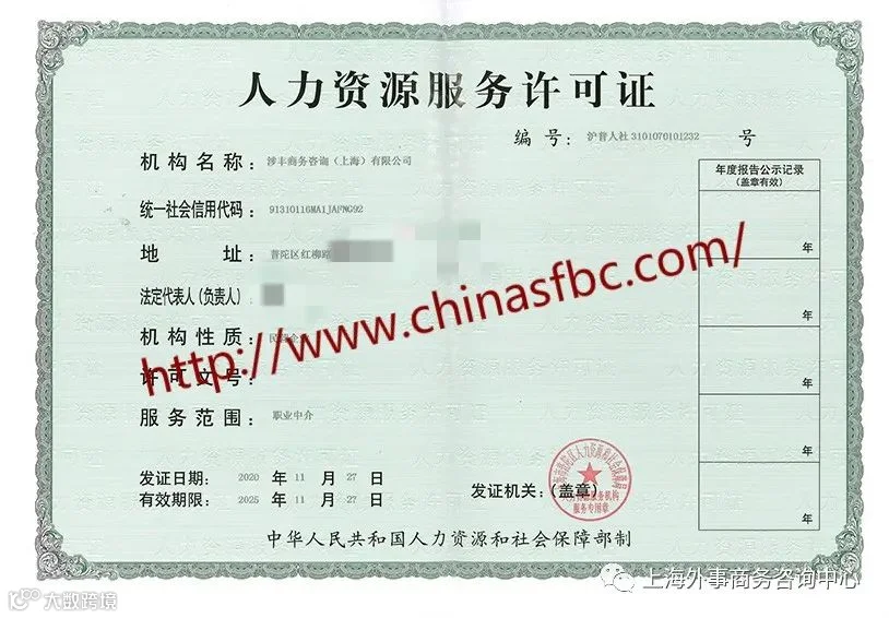 涉丰商务咨询(上海)有限公司(www.chinasfbc.com)是上海市外国专家局批准的外国人工作许可合法中介,我公司拥有《人力资源服务许可证》(如上图,请认准拥有此证书的公司才能合法开展外国人工作许可代理业务),如果想要了解更多信息,可以扫码入微信群联系我们,我们将竭诚为您服务。