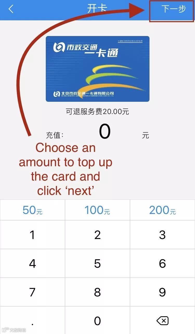 3. After registering, you can add a card to your account and choose how much money you wish to put on the card (as of now, iOS users are still subjected to the 20RMB refundable fee).