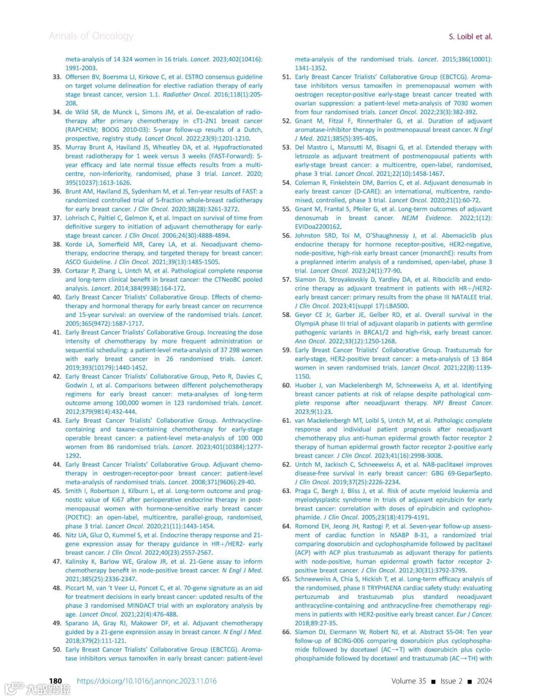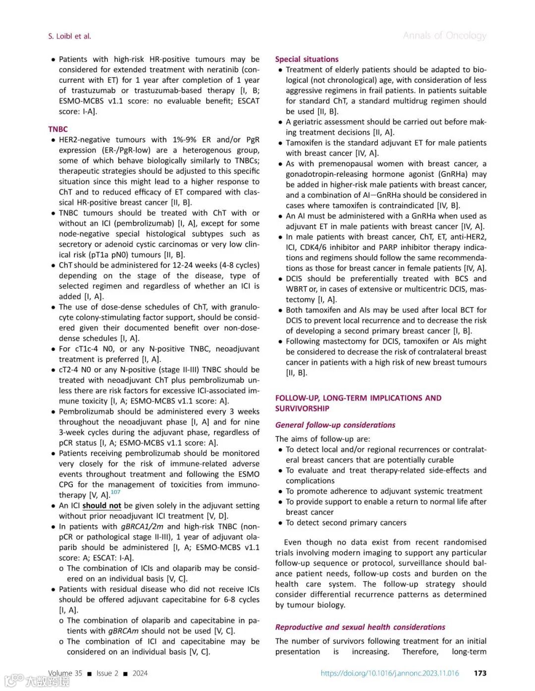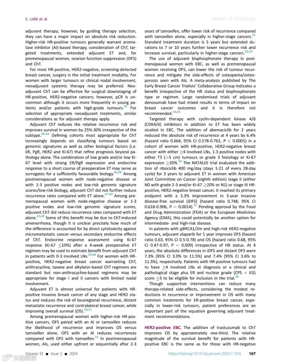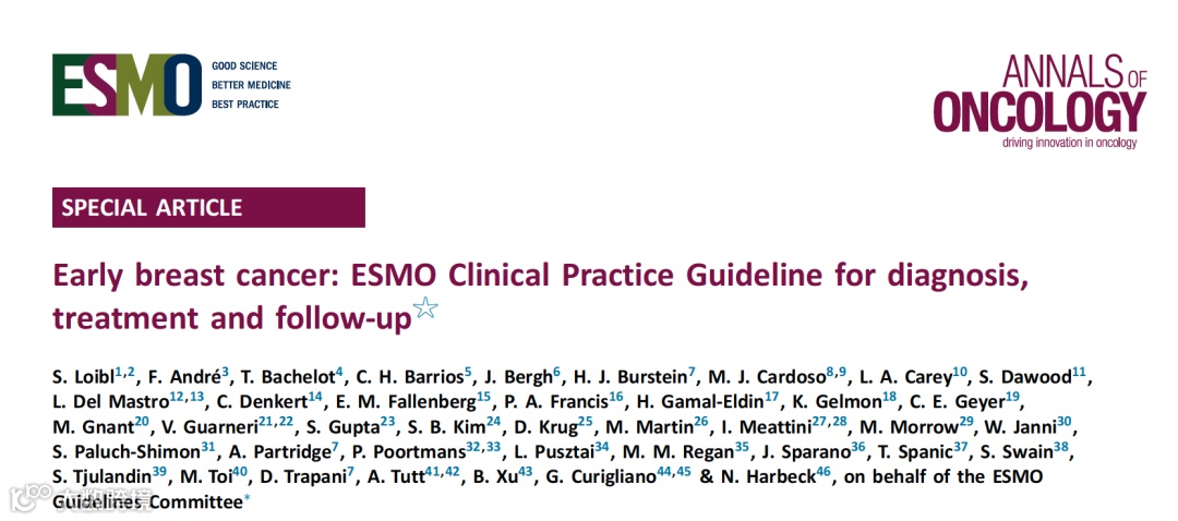 [引文] Loibl S, André F, Bachelot T, et al. Early breast cancer: ESMO Clinical Practice Guideline for diagnosis, treatment and follow-up. Ann Oncol. 2024;35(2):159-182.