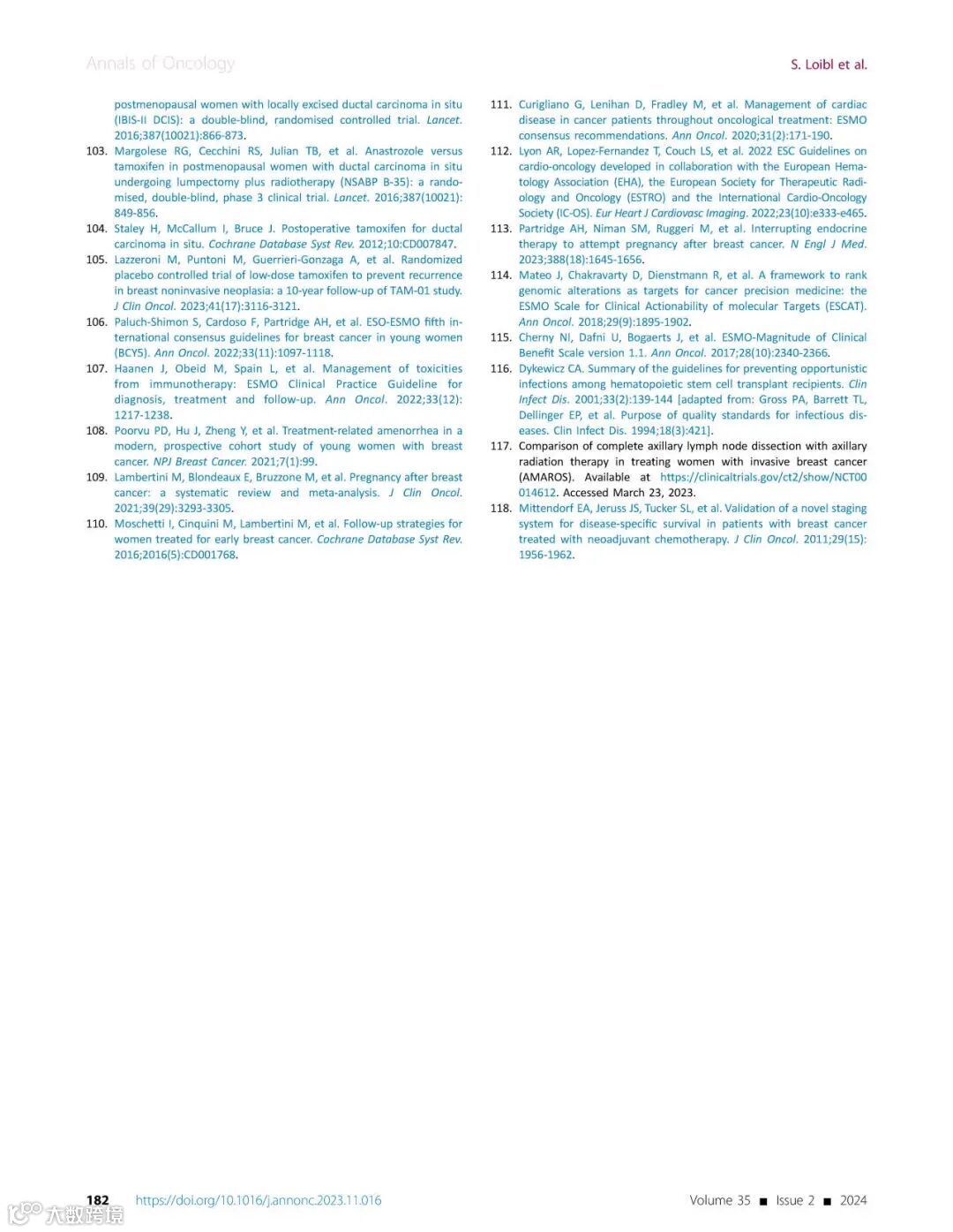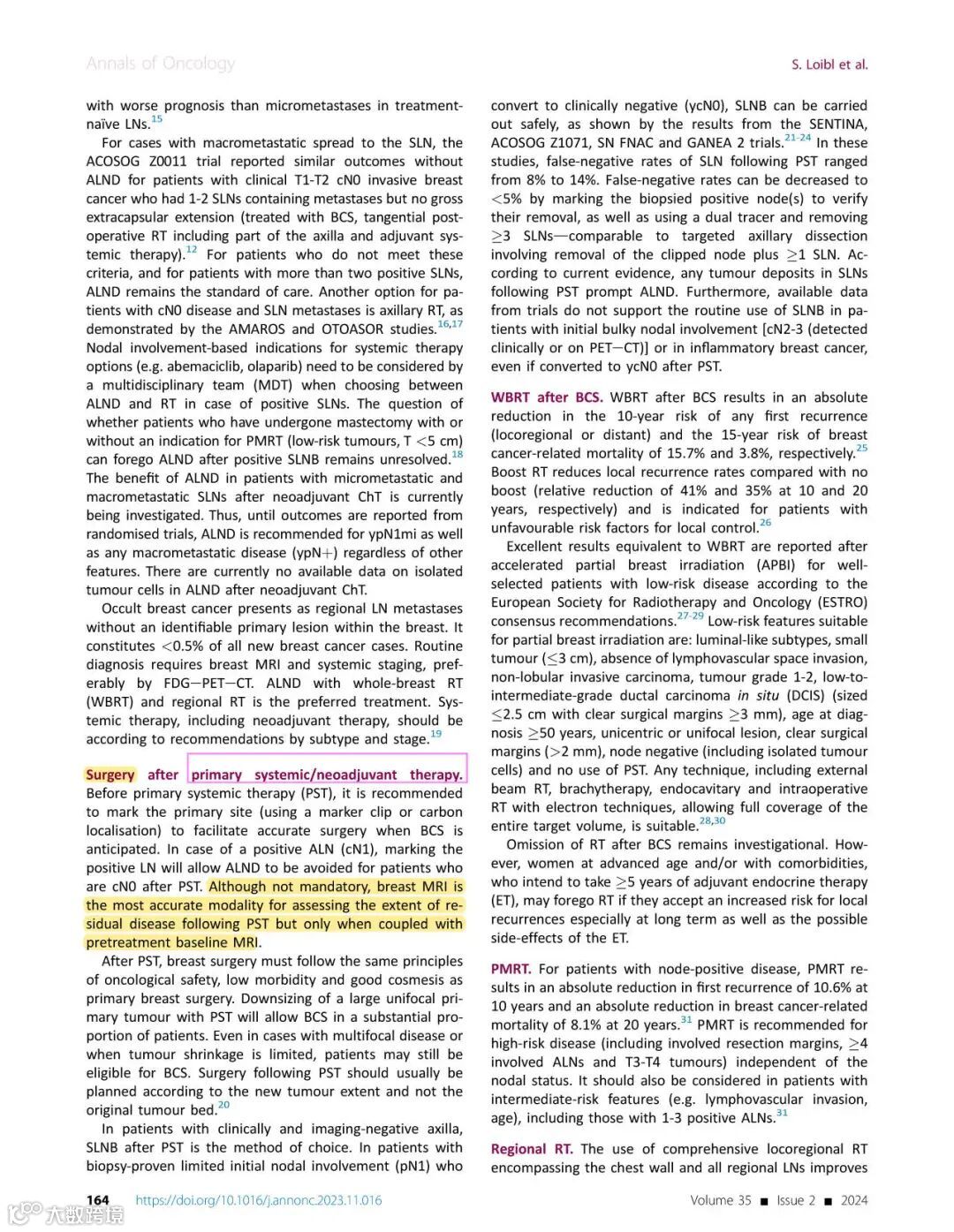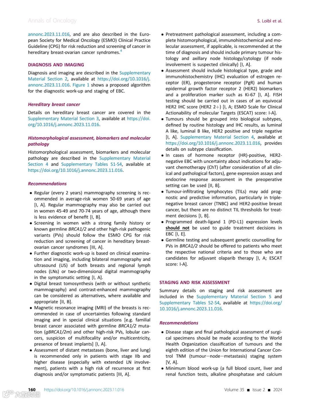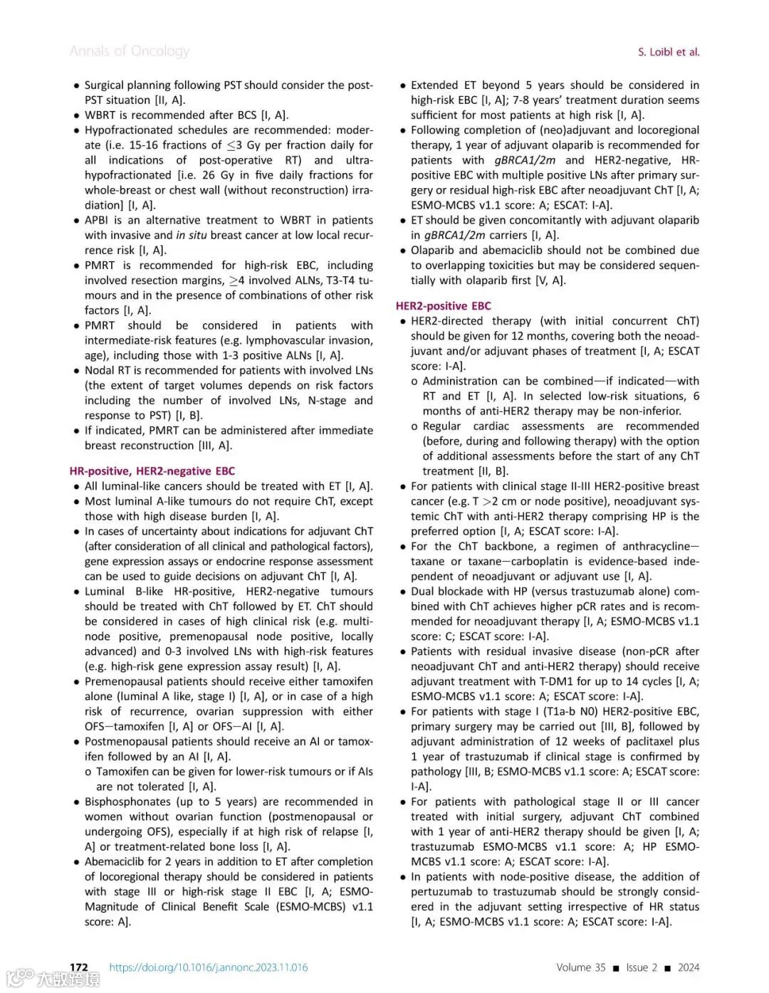 [引文] Loibl S, André F, Bachelot T, et al. Early breast cancer: ESMO Clinical Practice Guideline for diagnosis, treatment and follow-up. Ann Oncol. 2024;35(2):159-182.