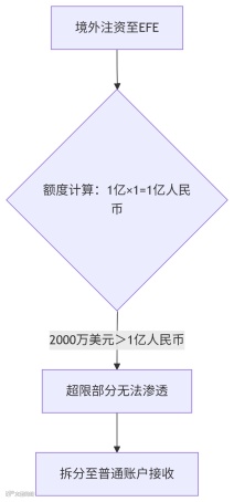 需注意:受“有限渗透”额度限制,若资本金或股权转让款金额超过渗透额度,不建议使用EFE账户办理境内支付。[k]