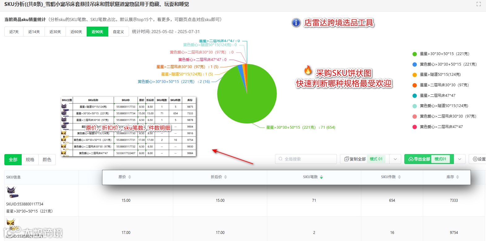 商家还可以制定更具针对性的营销策略:对热销SKU进行重点推广,在商品详情页、广告宣传及店内推荐位突出展示这个热销属性,配合促销、折扣等营销活动吸引更多消费者;对滞销SKU进行差异化营销,寻找新的市场机会或调整产品定价。