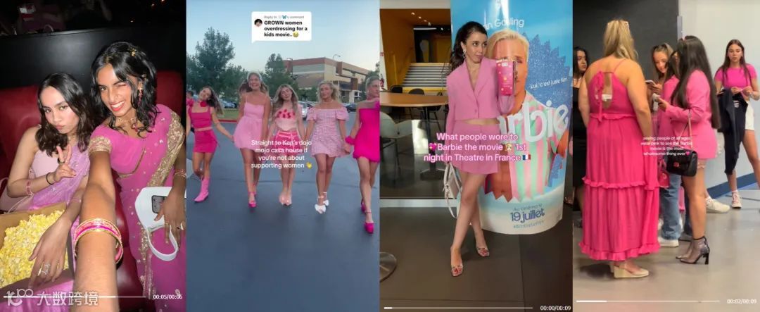 借助社媒蹭芭比热度的方式有很多种,如使用相关的贴纸滤镜,营造芭比风氛围,或是通过“观影芭比风穿搭”等视频进行场景化营销等。